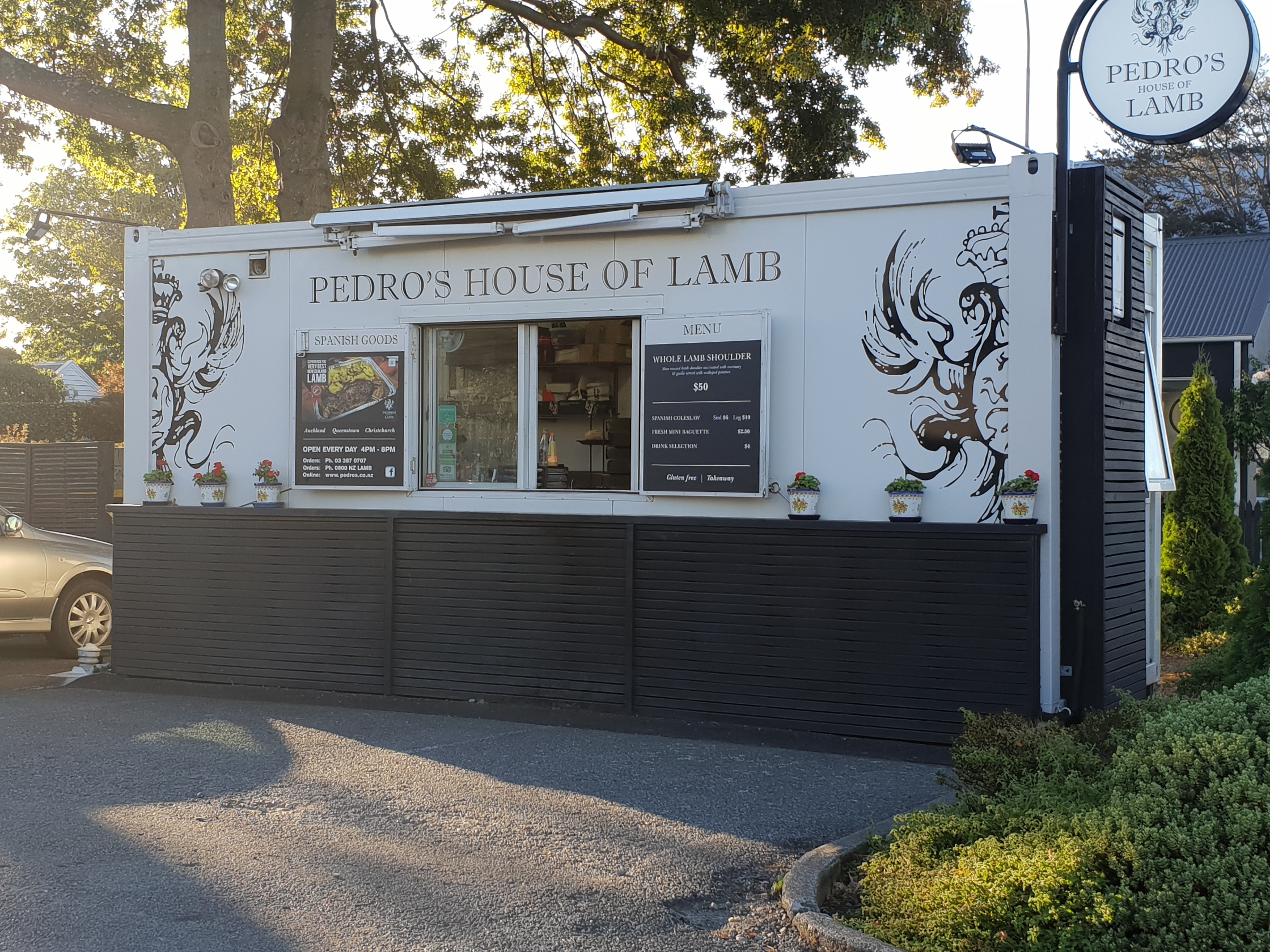 영업시간은 4시부터 8시까지이며, 크라이스트처치 외에도 다른 지역에 체인점이 있는데 크라이스트처치 점은 테이크아웃 전문점이었다. 남편 따라서 레스토랑 구경한다는 생각으로 갔다가, 컨테이너 박스만 있어서 조금 놀라긴 했다. 메뉴는 오직 "Whole lamb shoulder" 밖에 없는데 미리 고기를 푹 쪄놓기 때문에, 주문하고 음식을 받는데 시간을 별로 걸리지 않는다. 가격은 50 NSD으로 조금 비싼 편이긴 하지만, 음식 양을 보니 2명이 먹기에는 너무 많고 3-4명이서 충분히 배부르게 먹을 수 있는 양이었다.