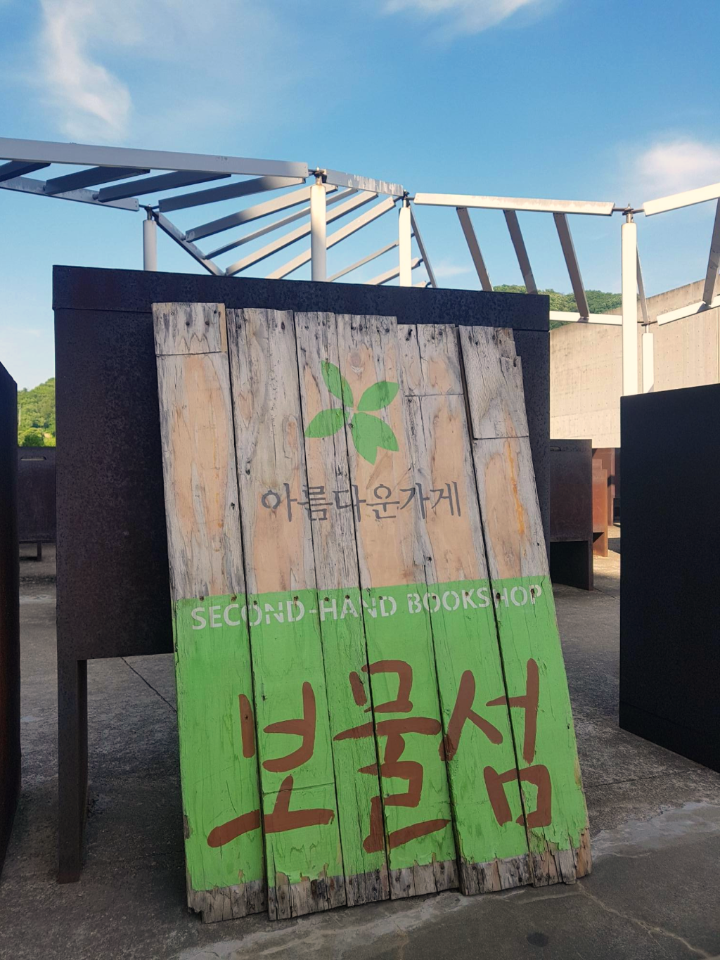두 번째 방문한 곳은 지혜의 숲으로 오기 전 검색해서 알아봤던 헌책방, 아름다운 가게. 지혜의 숲 2층으로 외부 계단을 통해서 올라가면 된다. 대학교 때 친한 언니의 권유로 '아름다운 가게'에서 봉사활동을 한 적이 있는데, 그리운 추억이 생각나는 순간이었다. 책방에는 헌 책이라고는 생각할 수 없을 만큼 깨끗한 책들이 많이 있었는데 (내가 좋아하는 만화책까지 ㅋㅋㅋ), 똥쟁이 남편은 휘둥그레진 눈으로 책 여러 권을 득템 했더랬다.