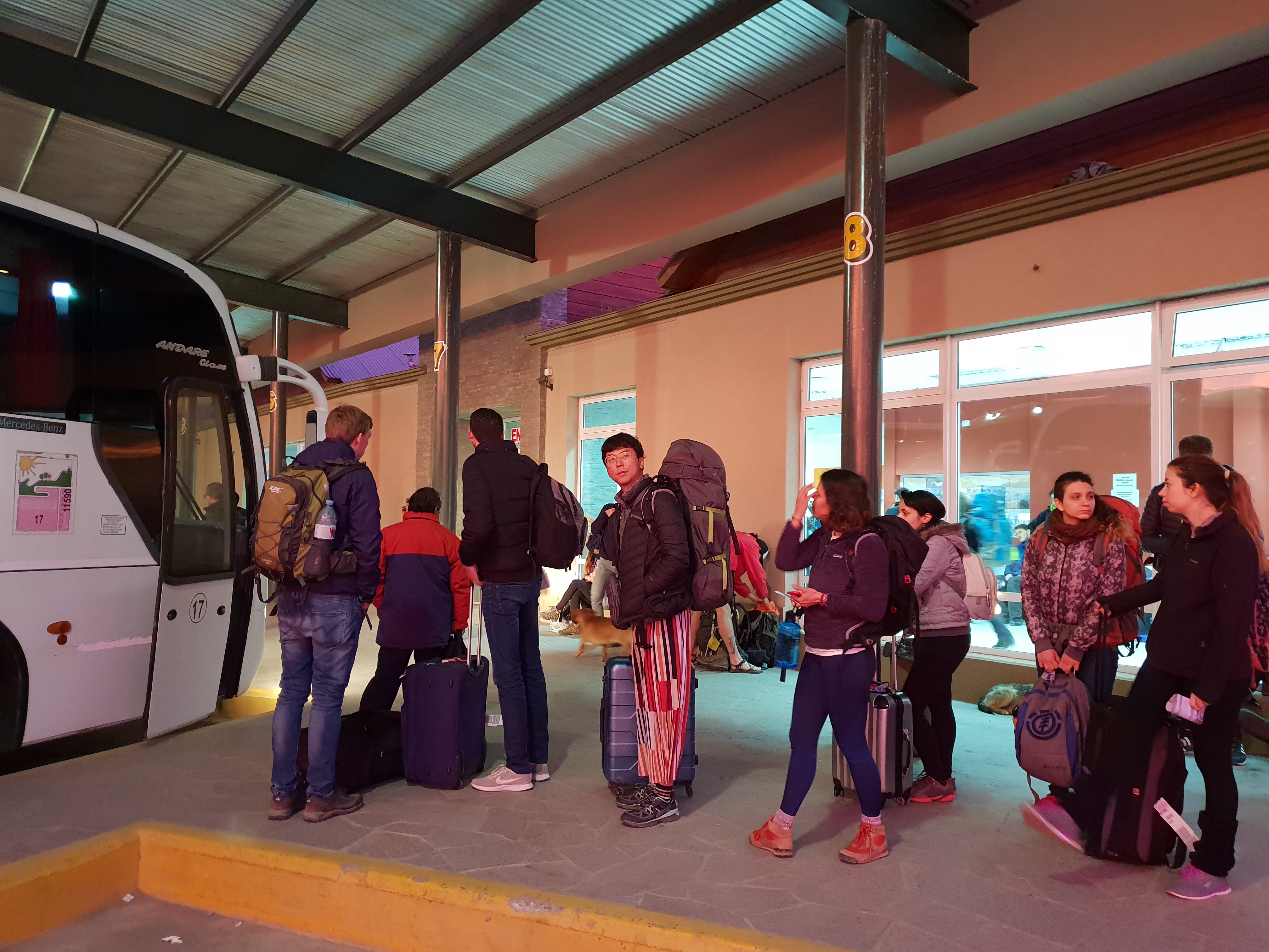 엘 칼라파테에서의 여유로웠던 3박 4일간의 여정을 마치고 엘 찰텐으로 떠나는 날 아침. 마치 불타오르는 것처럼 보이는 아침, 아니 새벽하늘을 보며 우리처럼 버스 정류장에서 멍 때리고 있는 여행자들이 많았다. 엘 칼라파테에서 엘 찰텐으로 이동하는 버스 티켓은 엘 칼라파테에 도착한 날 버스 정류장에서 미리 예약하였는데, 일찍 예약해서 그런지 버스 2층 맨 앞 좌석에 앉을 수 있었다. 내가 그렇게 맨 앞에 앉으려고 노력했던 이유는 바로 "RUTA 40", 바로 아르헨티나 40번 국도 때문이었다.
