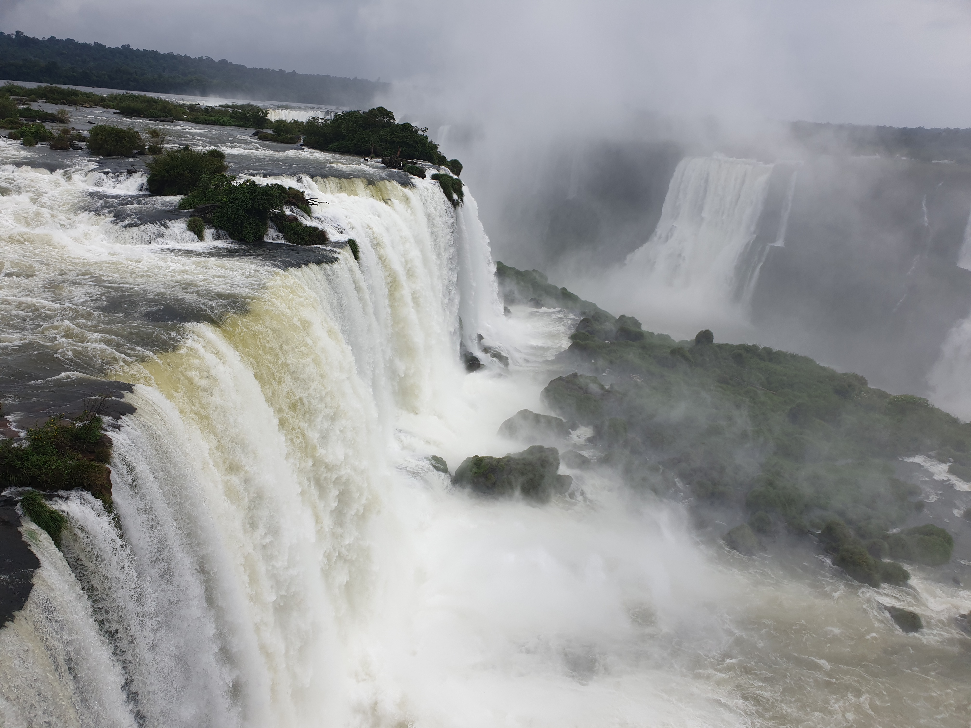 브라질에 입국하는 것도, 무사히 브라질 이과수 국립공원에 도착한 것까지도 아무 문제가 없었다. 그러나... 갑자기 후두둑 떨어지는 이 비는 어떻게 해야 할지. 아직 악마의 목구멍에 가지도 못했는데 비가 쏟아지기 시작했다. 우비를 사야 할지 고민하고 있던 찰나, 우리 눈에 보인 거대한 물줄기.