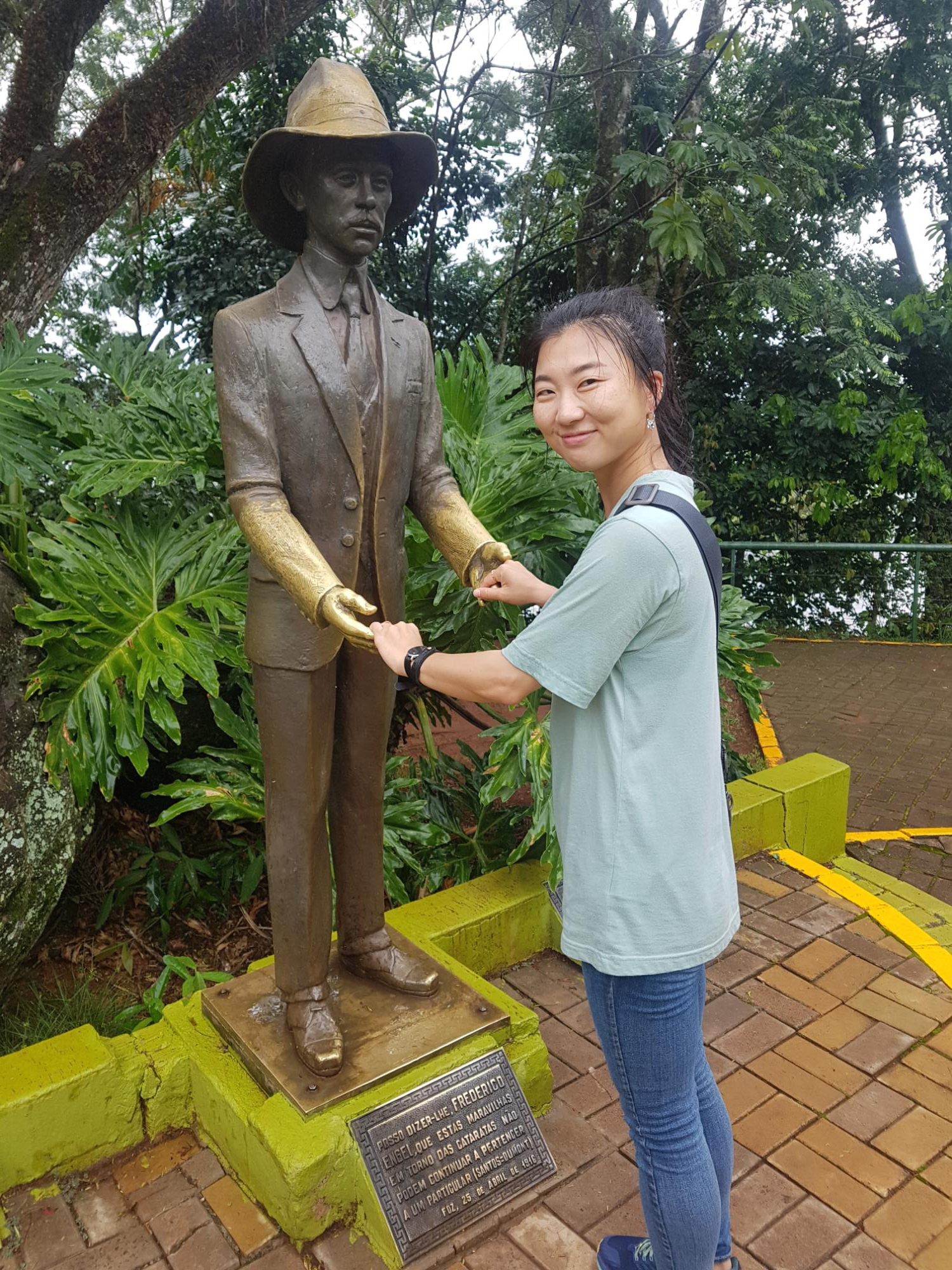오른쪽 사진의 팔꿈치 아래만 반짝거리는 동상의 주인공은 Frederico Engel이다. 그는 20세기 초부터 이과수 폭포 주위에 주거하면서 사유지로 귀속되는 것을 막았던 '영웅' 같은 인물이라고 한다. 사실, 사진 찍었을 때에는 포르투갈어로만 설명되어있어서 누군지 모르고 찍었다.