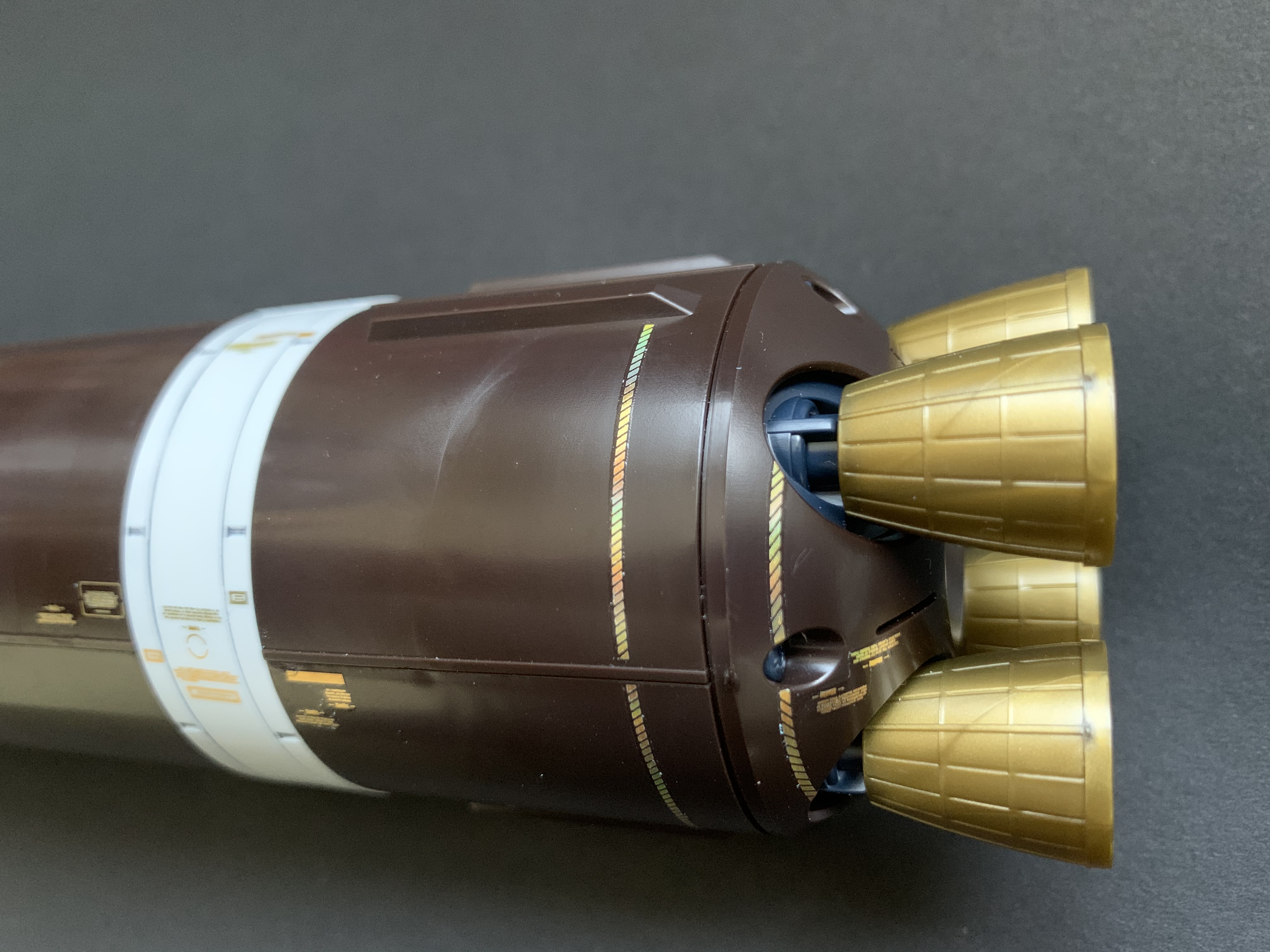 라인 데칼이 많은 편이라서, 데칼 작업의 난이도는 꽤 높은 편이라고 생각합니다. 아마, 홀로그램 데칼이 아닌 기존 데칼로 작업하였다면 많이 찢었을 것 같은 그런 느낌이 들어요... 거대한 프로 펠런트 탱크 같은 경우에는 데칼이 없었더라면 아주 심심했을 것 같은데, 골드 데칼이 그런 심심함을 없애주는 것 같습니다.
